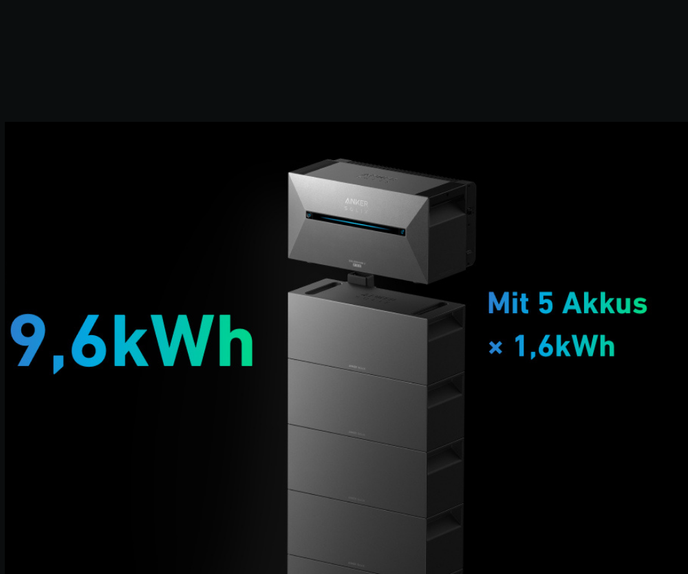 2. Akku-Erweiterung: Die Solarbank E1600 unterstützt keine Akku-Erweiterung. Alle anderen Solarbank-Versionen können mit bis zu fünf Erweiterungsakkus mit einer Kapazität von bis zu 9.600Wh erweitert werden.