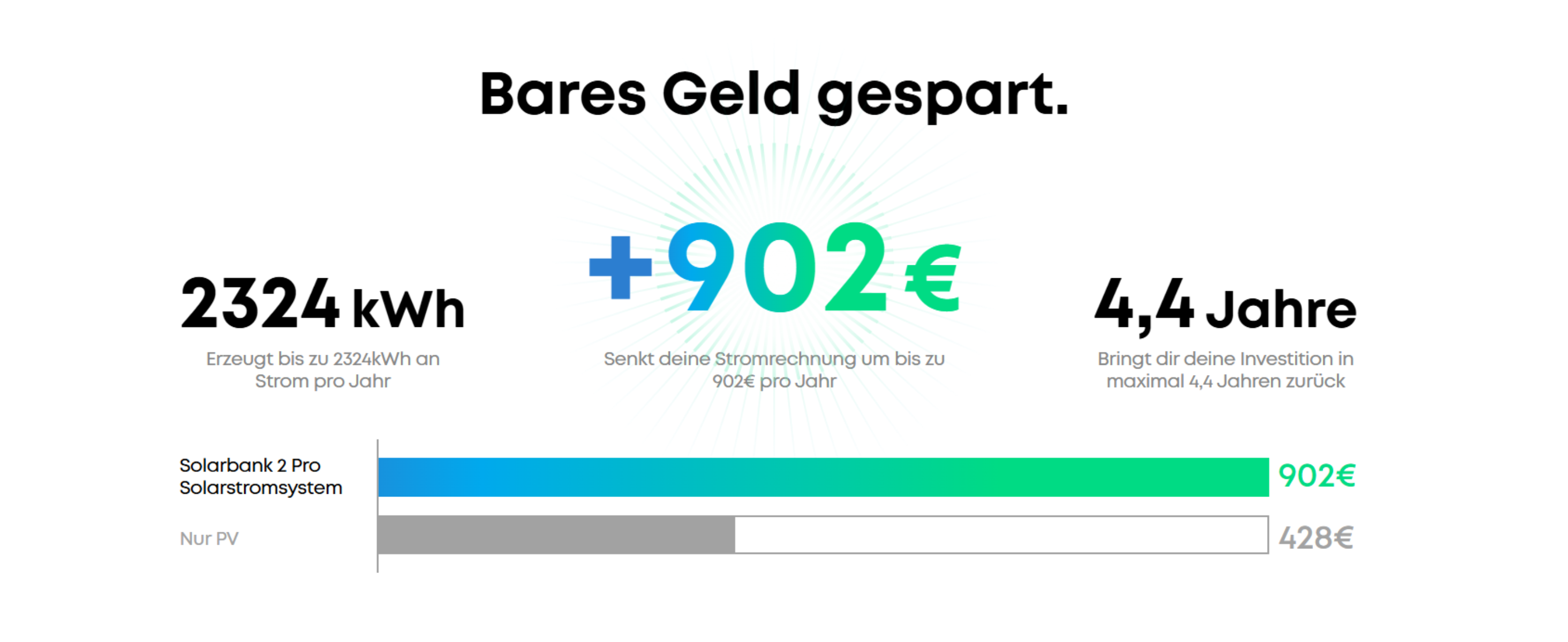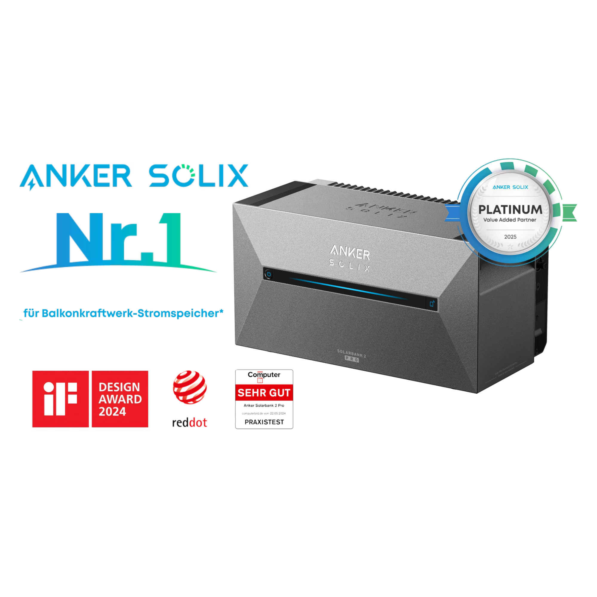 Anker SOLIX Solarbank 2 E1600 Pro Balkonkraftwerk speicher mit 450Wp Solarmodul und MC4 Solarkabel Set